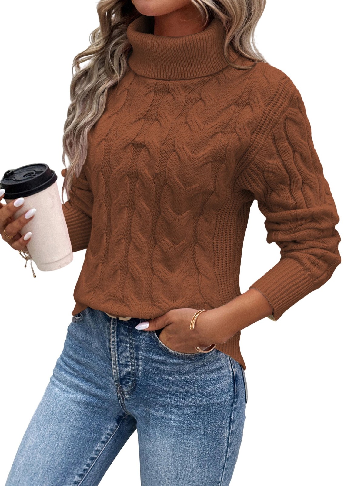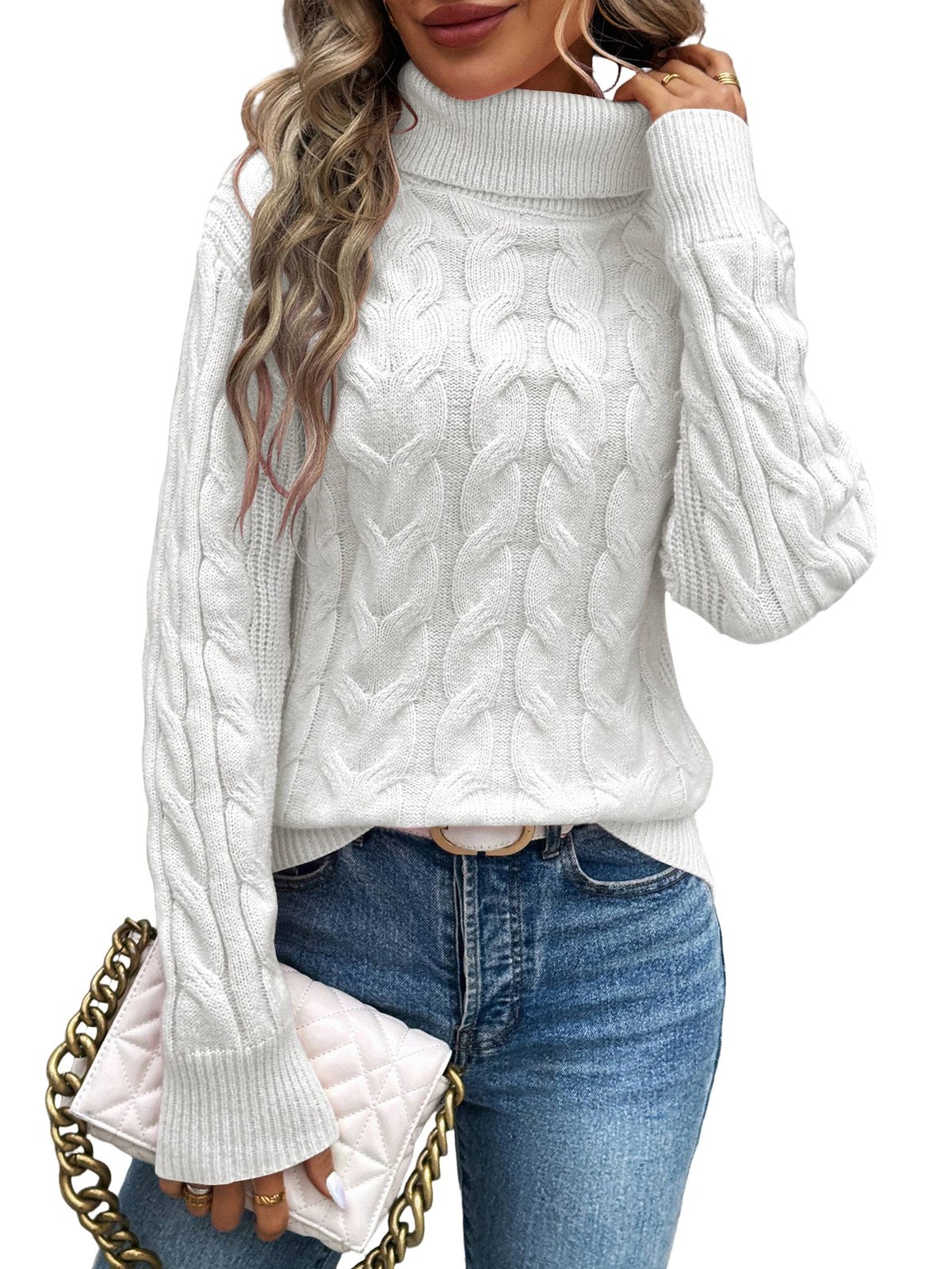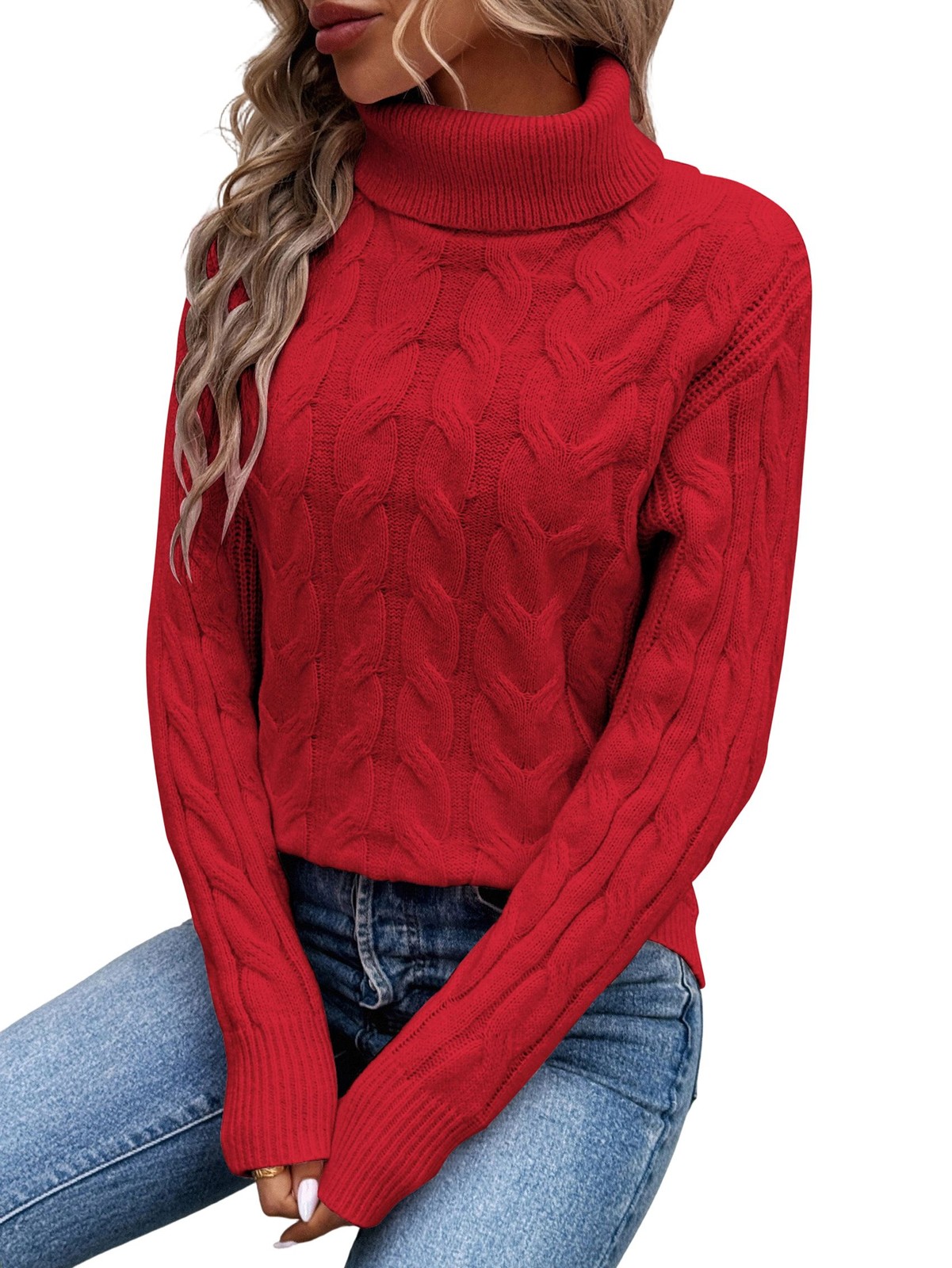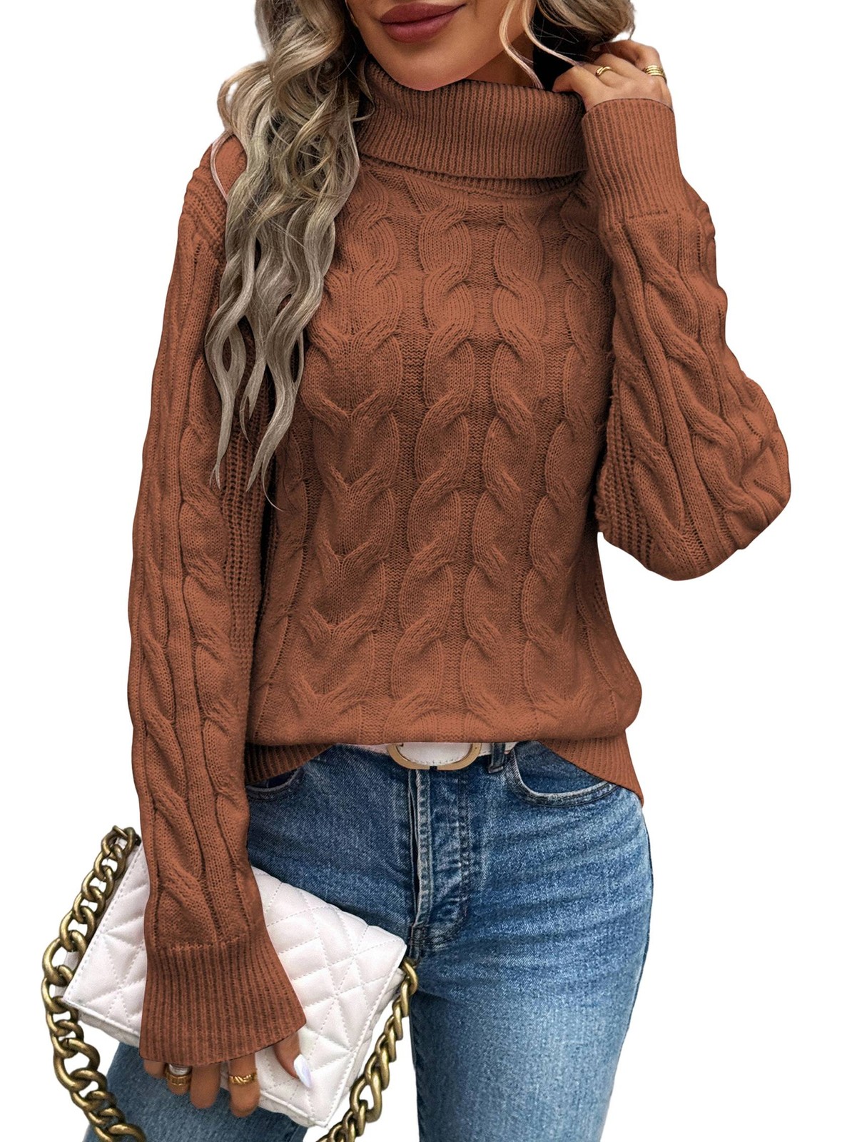 Women Turtle-Neck Sweaters Cable Knit Long Sleeve Pullover Tops Fall1000