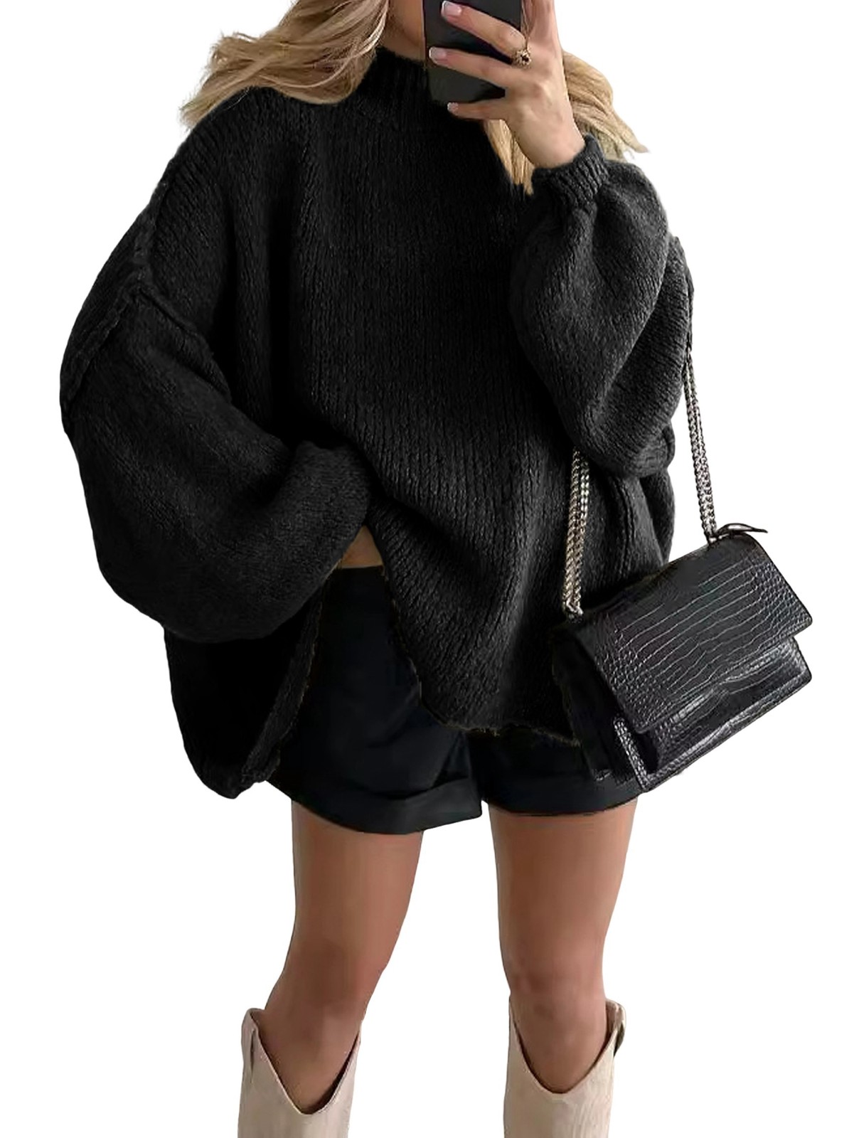Female Turtle-Neck Oversized Sweaters Batwing Long Sleeve Pullover Loose9352