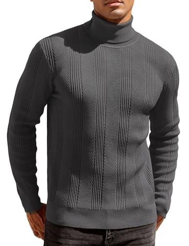 COOFANDY Mens Jumpers Slim Fit Turtle Neck Sweaters Knitted Turtleneck Jumpers Smart Casual Polo Neck Warm Winter Business Pullover Dark Grey L