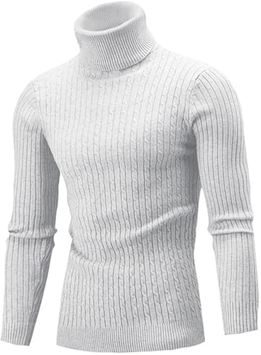 Belovecol Mens Turtleneck High Roll Neck Tops Soft Warm Knitted Turtle Neck Pullover Sweaters, White, L