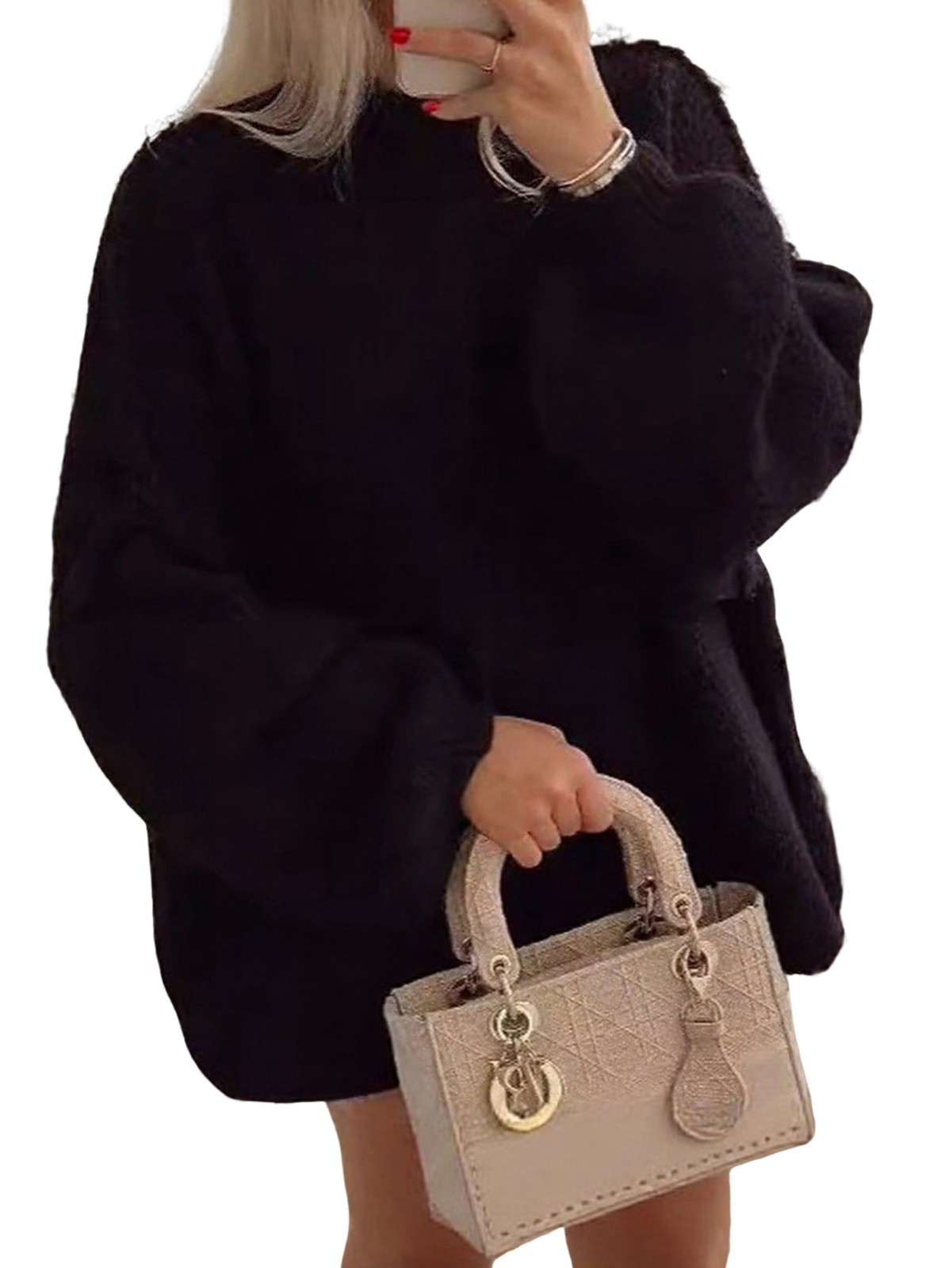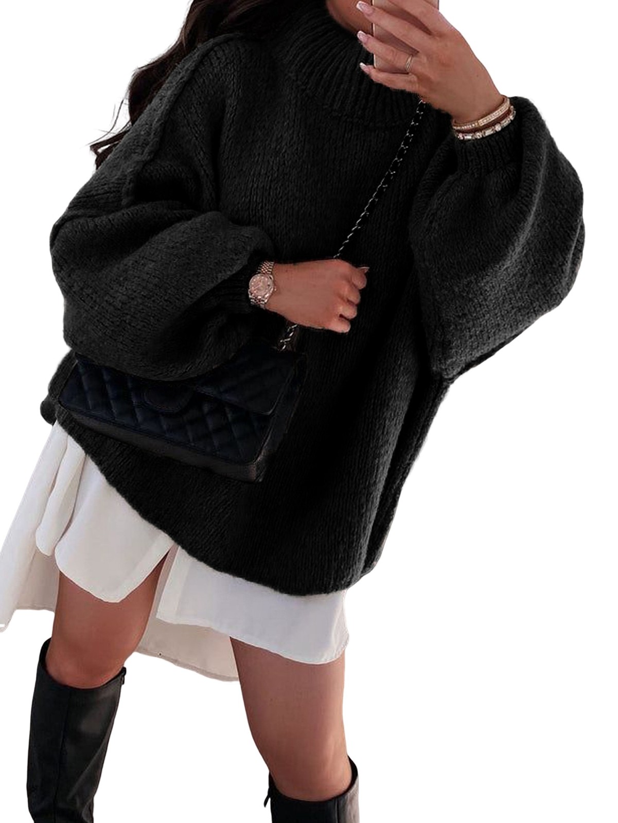 Female Turtle-Neck Oversized Sweaters Batwing Long Sleeve Pullover Loose6706