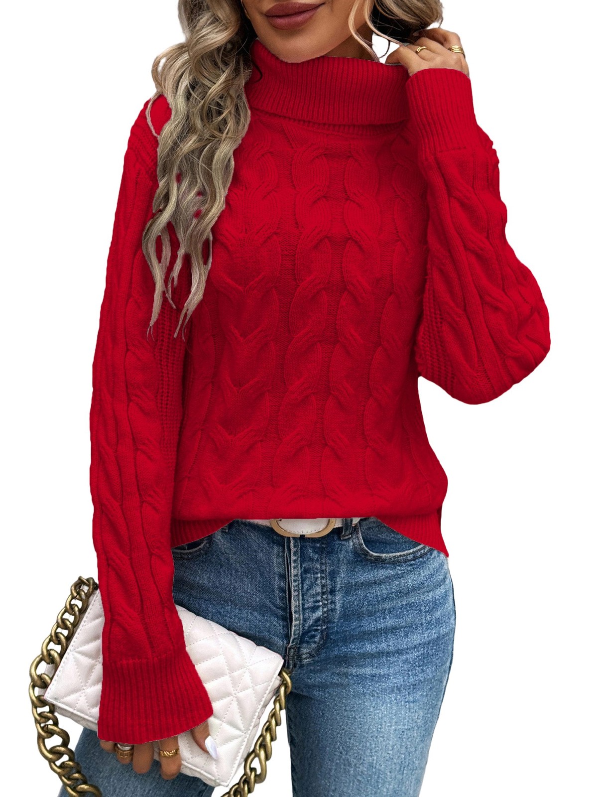 Women Turtle-Neck Sweaters Cable Knit Long Sleeve Pullover Tops Fall3498
