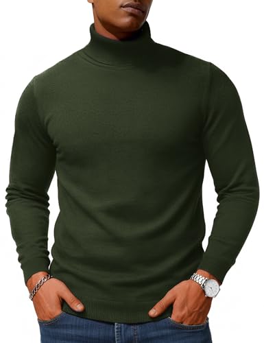 TOBILE Men Turtleneck Sweater Winter Turtleneck Thick Mens Sweaters Casual Turtle Neck Solid Color Quality Warm Slim Turtleneck Sweaters Pullover Men-Md001-Armygreen,Eur M 55-65 Kg
