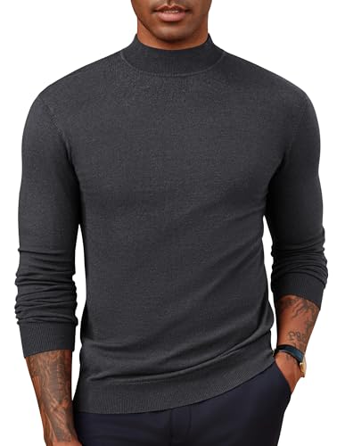 Belovecol Mens Turtleneck High Roll Neck Tops Soft Warm Knitted Turtle Neck Pullover Sweaters, Gray, M