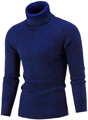 Belovecol Mens Turtleneck Tops Slim Fit High Roll Neck Jumpers Warm Winter Turtle Neck Pullover Sweaters, Dark Blue, XXL