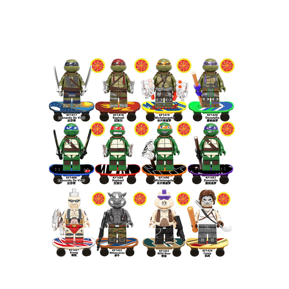 12PCS Ninja Turtle Series Da Vinci Casey Wild Boar Rhinoceros Assembly Blocks Miniature Mini Toys