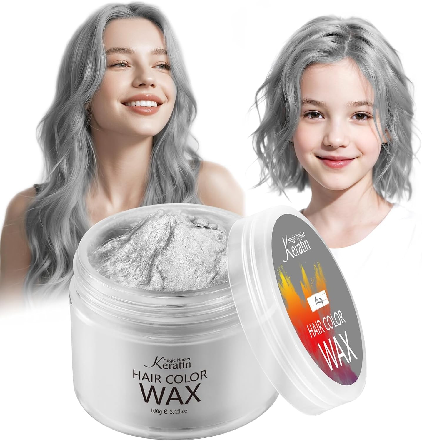 Magic Master Keratin Gray Hair Color Wax 3.4 Fl Oz Natural Washable Temporary Hair Color for Kids Girls Women & Men Dark Hair Party Cosplay Festi