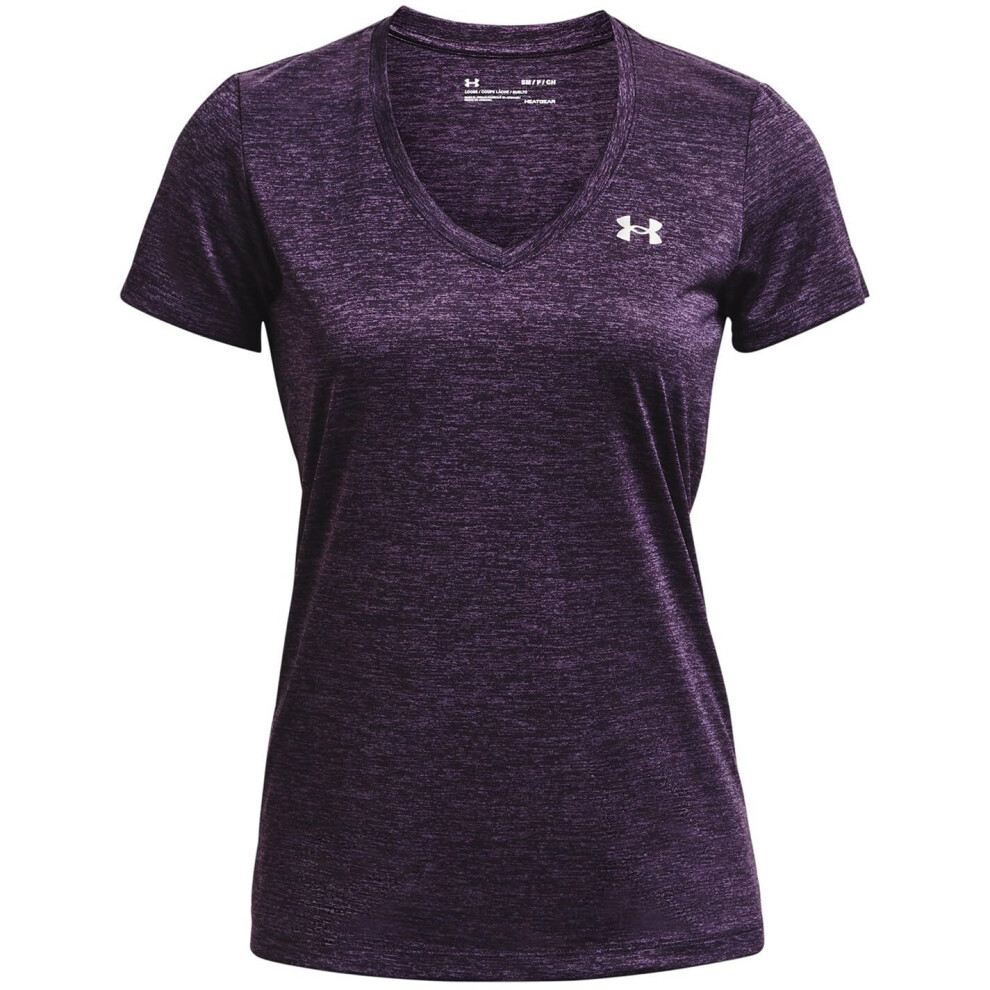 Under Armour Womens Tech V-Neck Twist Short-Sleeve T-Shirt, (544) Tux Purple/Retro Purple/Metallic Silver, X-Small