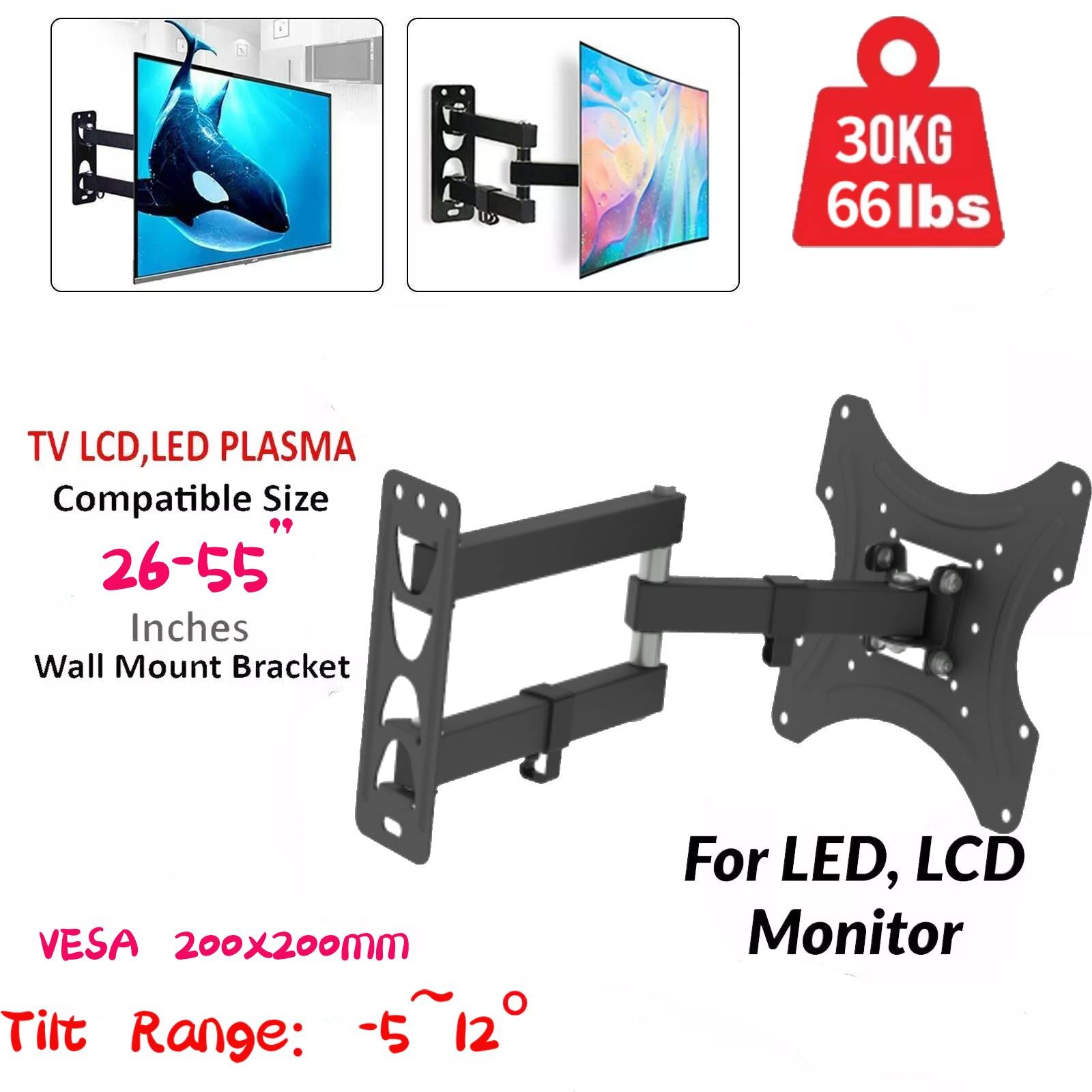 Tilt Swivel TV Wall Bracket Mount For 26" 30 32 42 46 48 50 inch LG SONY Samsung