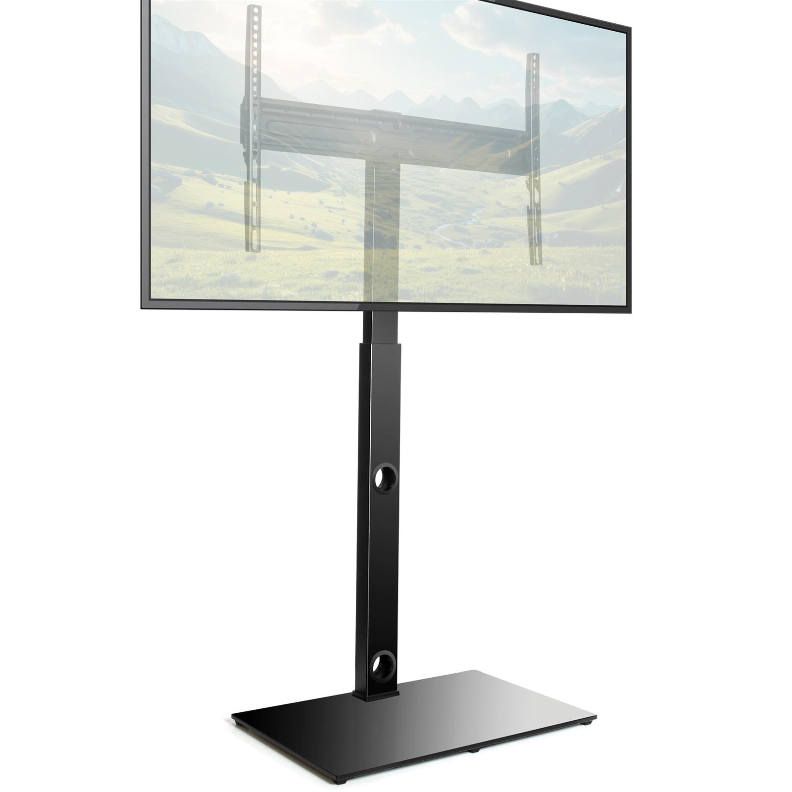 Futura TV Stand 30–75 Inch TVs, Swivel Height Adjustable Tempered Glass Base