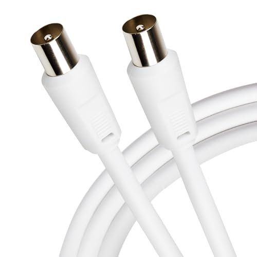 1m TV Aerial Cable with Coaxial Adapter – Male to Male RF Lead – Gold-Plated – For Freeview, Freesat, Sky Box, BT, TV Aerial Extension