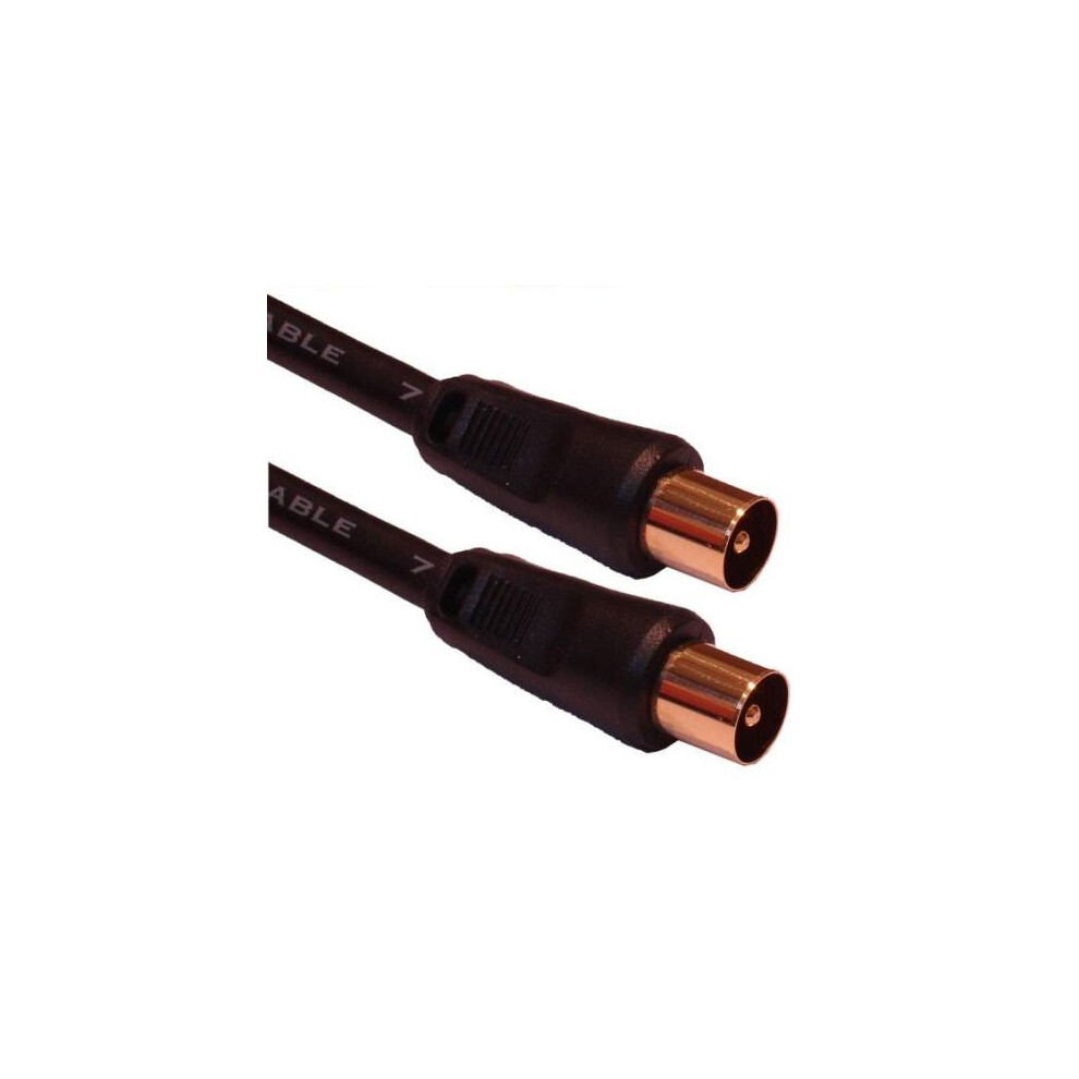 Cable Mountain 2m Gold Plated Male to Male Plug to Plug Shielded TV Coaxial Aerial Cable - Black