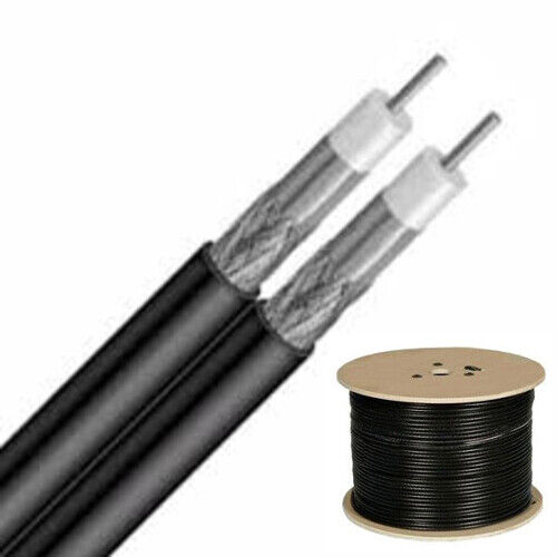 250m Twin TV Satellite Aerial Cable RG6 Black Foam Filled