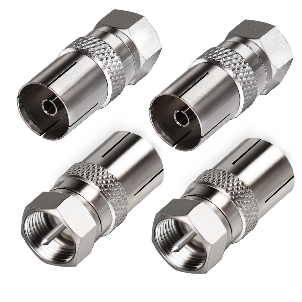 4Pcs F Type to Coax Adapter Kit for Satellite, Antenna, TV Aerial Connector F Fe