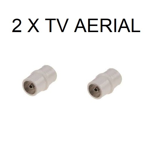 2 x MALE COAX to F TYPE FEMALE SOCKET TV Aerial Sky Connector Adapter TWIN PACK