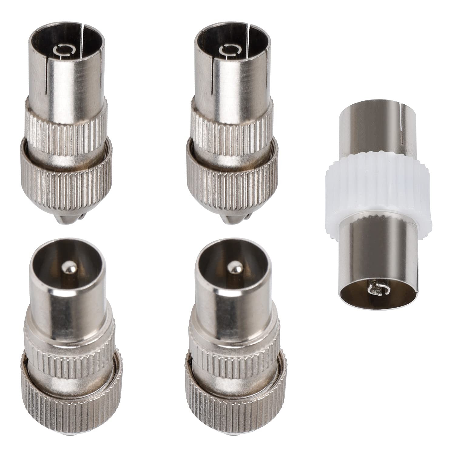 5 PCS aerial connectors,2x Female & 2x Male TV Aerial Coaxial Cable Connector