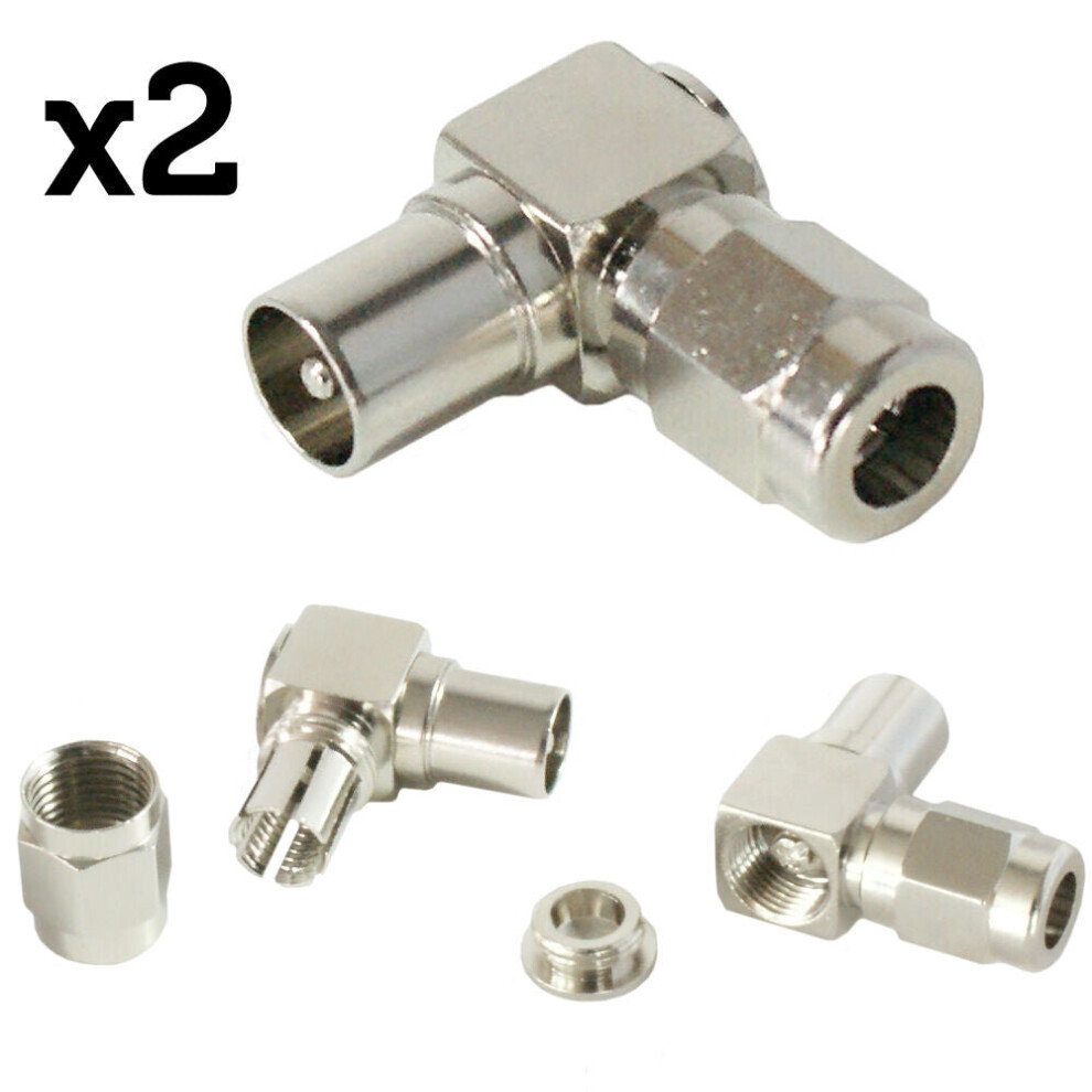 2x Right Angled TV Aerial Male Connector 90 Degree RF Coaxial Plug Adapter
