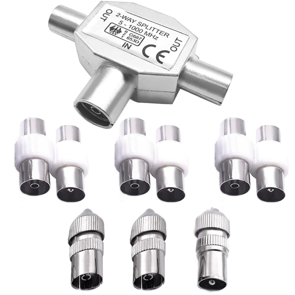 electrosmart® TV Aerial / Satellite Connector Kit - 2 Handy Adaptors & 1 Coupler