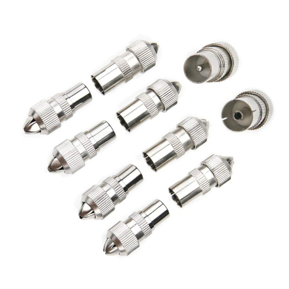 Liandasheng 10 PCS Aerial Connectors, Metal TV Aerial Connector Co-Axial Plug, 5x Female & 5x Male TV Aerial Coaxial Cable Connectors Adaptor, Coaxia