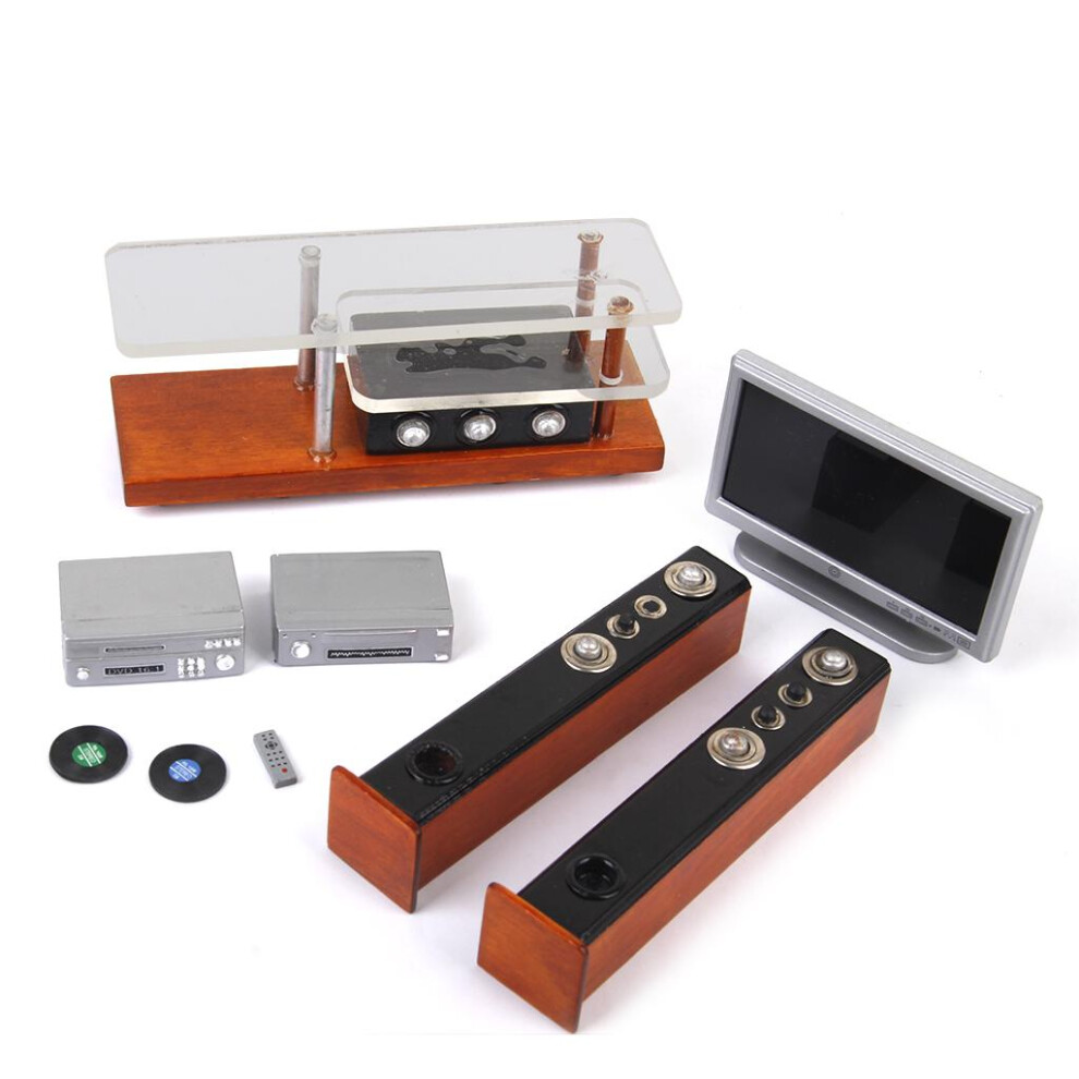 KIXZSAZ Dollhouse Miniature Collection Featuring TV Sound System Remote Control And Diverse Accessories Sparks Creativity Silver And Black Disc Acrylic Plastic