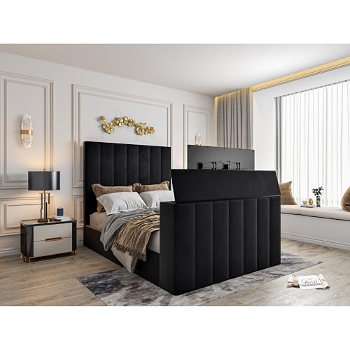 ark future Empress TV Bed with Built-In TV Storage – Luxury Frame with Remote Lift Mechanism – Premium Upholstered Bed (Mattress not included) (Black, 4.6ft double)