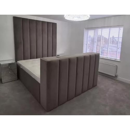 ark future Empress TV Bed with Built-In TV Storage – Luxury Frame with Remote Lift Mechanism – Premium Upholstered Bed (Mattress not included) (Mink Plush Vvelvet, 4.6ft Double)