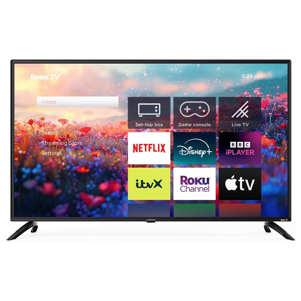 VELTECH 32 Inch Smart Roku TV -Bezel Light Design, LED HD, Freeview, N