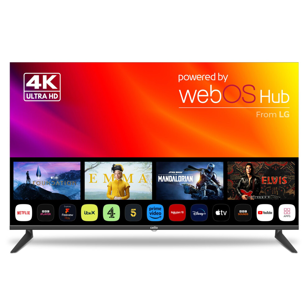 Cello 50? inch Smart Ultrafast WebOS 4K TV, 3 Years Warranty, Freeview Play FreeSat, Bluetooth. Netflix, Apple TV+, BBC iPlayer Frameless Bezel Made