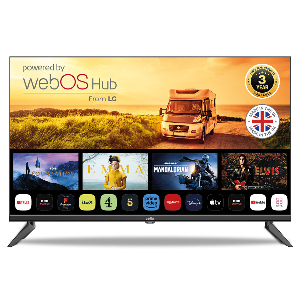 Cello 50″ inch Smart Ultrafast WebOS Full HD TV with Freeview Play FreeSat, Bluetooth. Netflix, Apple TV+, Prime Video, Paramount+, BBC iPlayer Frameless Bezel Made in the UK
