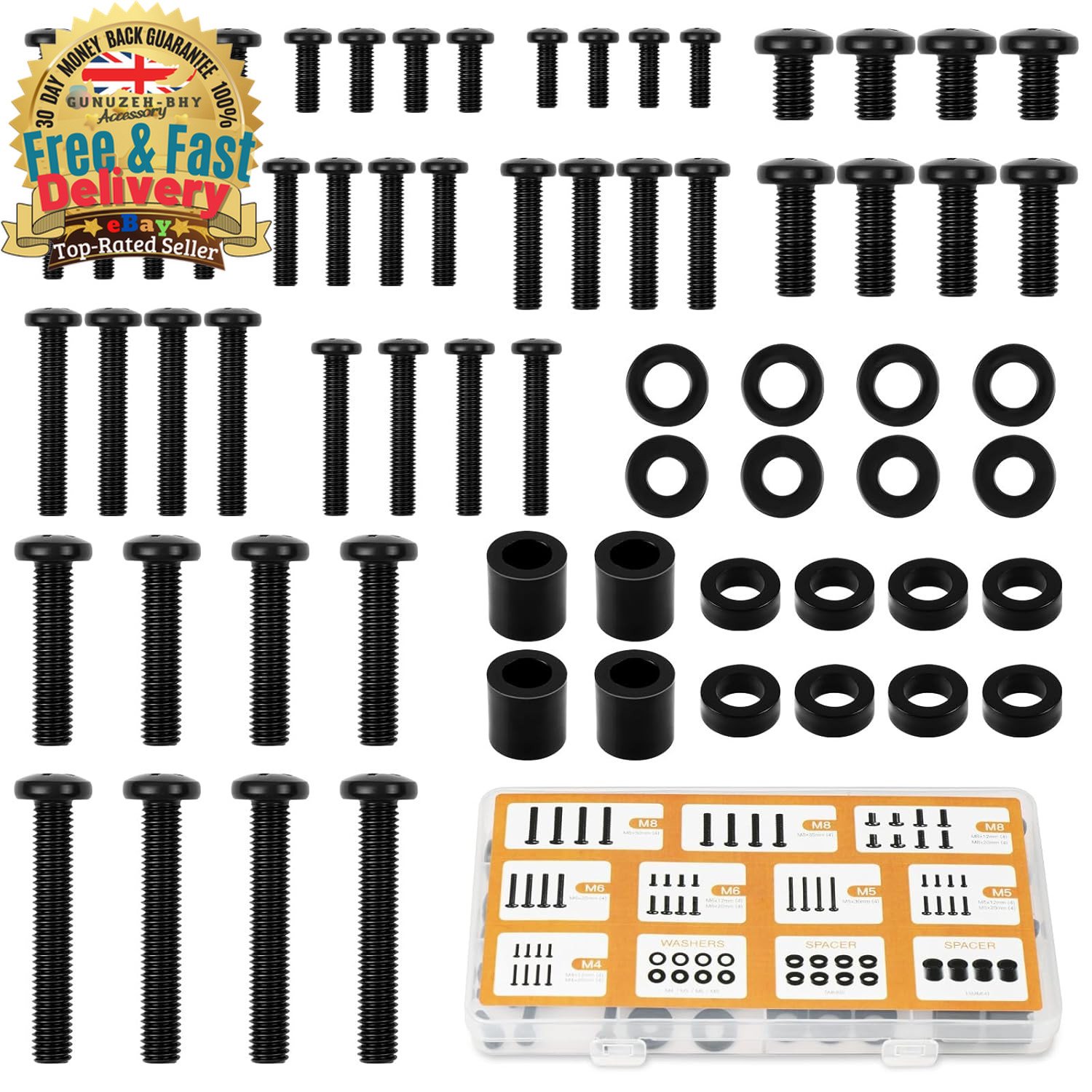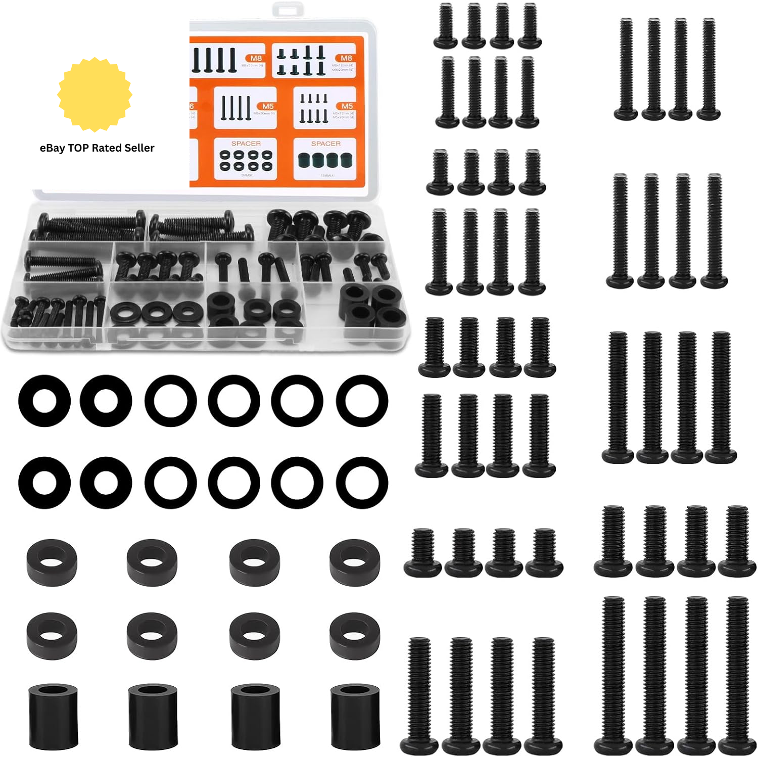 76pcs TV Bracket M4/M5/M6/M8 VESA Screws Kit (Black/Iron),with Washers/Spacers-