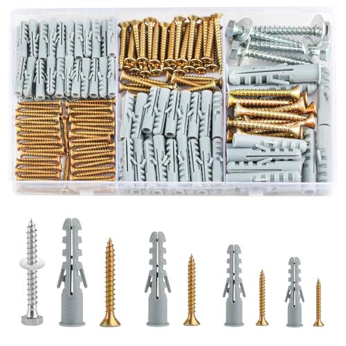 228 Assorted Screws and Wall Plugs Set, Masonry Plasterboard Wall Plugs and Screws for Brick Concrete Plasterboard Fixings for TV Bracket