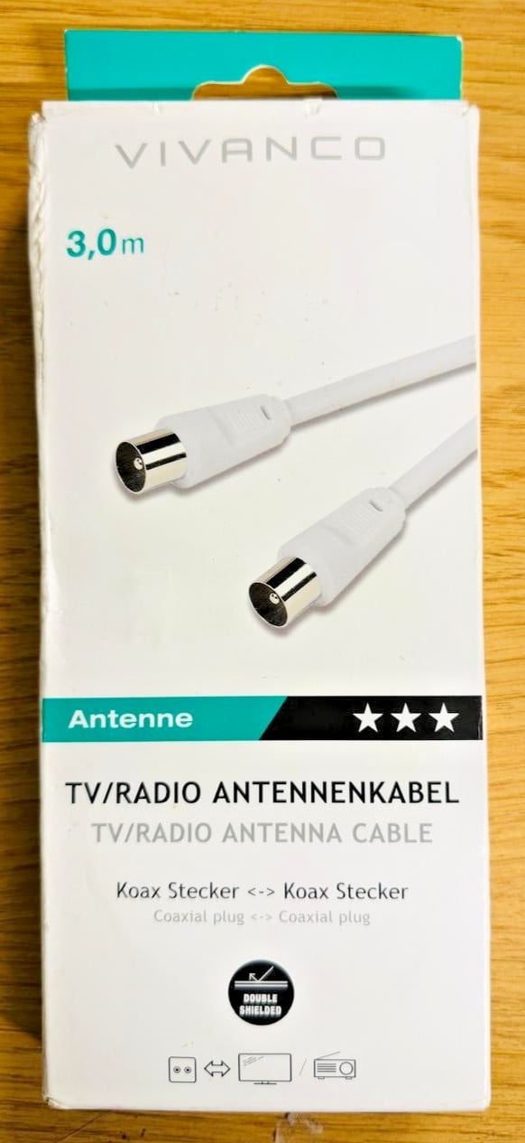 3 M TV Ariel Cable Lead Extension Cable coaxial Male To Male White