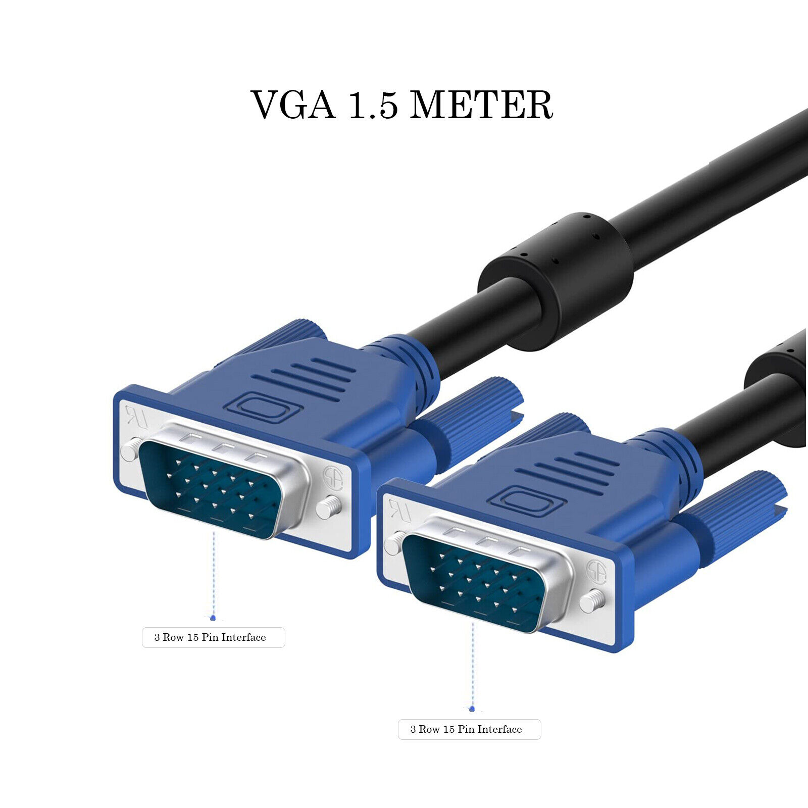 1.5M VGA SVGA 15 Pin PC to Monitor TFT TV LCD Extension Cable Male to Male Lead