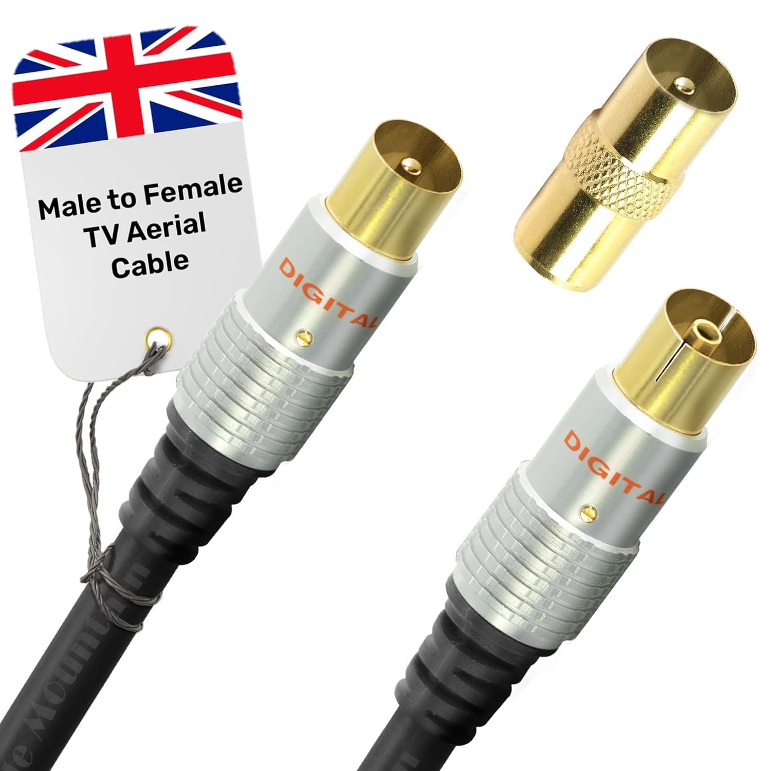 Male to Female TV Aerial Cable 2M – Tv Aerial Extension Cable with Gold Plated P