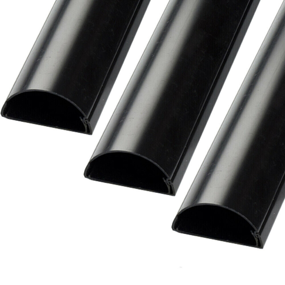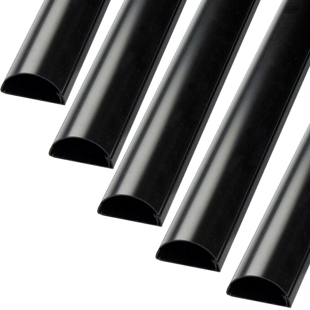 D-Line Mini Cable Trunking 8-Pack, Half Round Cable Cover, Paintable, Self-Adhesive Wire Cover, Hide TV Wires, Cable Management - 8x 30mm (W) x 15mm (H) x 1-meter Lengths (8-Meter) - Black