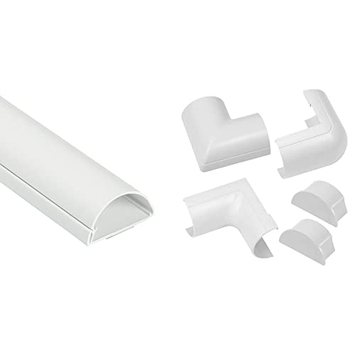 D-Line Mini Cable Trunking 8-Pack, Half Round Cable Cover, Paintable, Self-Adhesive Wire Cover, Hide TV Wires, Cable Management - 8x 30mm (W) x 15mm (H) x 1-meter Lengths (8-Meter) - White
