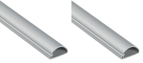 D-Line Mini Cable Trunking, Half Round Cable Cover, Paintable, Self-Adhesive Wire Cover, Hide TV Wires, Cable Management - 30mm (W) x 15mm (H) x 1-meter Length - Aluminium-Effect (Pack of 2)