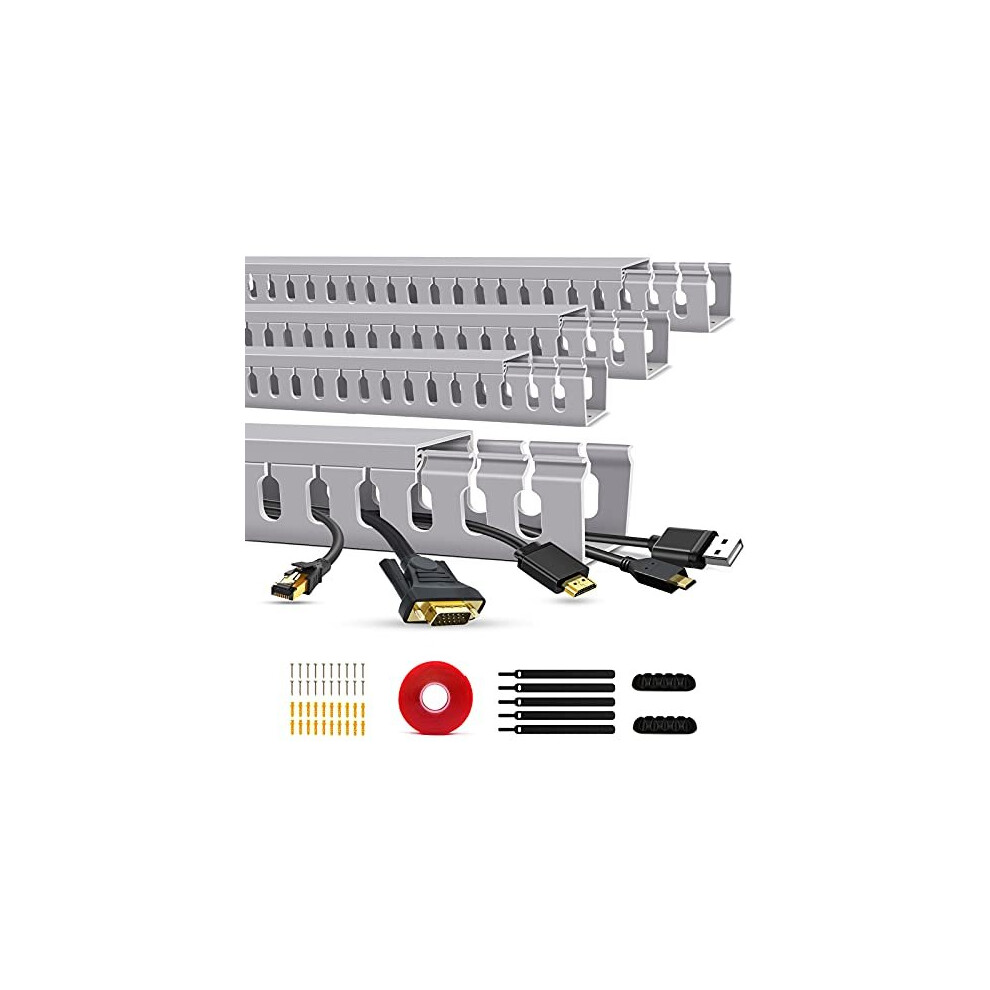 Cable Trunking Raceway Kit, Open Slot Wire Trunking for TV Cables, Cable Concealer Cable Tray 62.8 inch (4 x 15.7")Under Desk Organizer Cabl