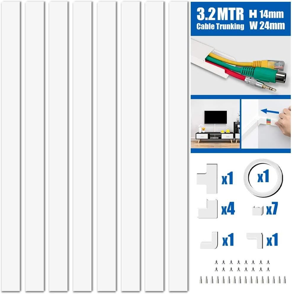 Cable Trunking Kit, Trunking for TV Cables, Self Adhesive Wall Cable Tidy, Wire Covers Wall, Cable Management to Hide