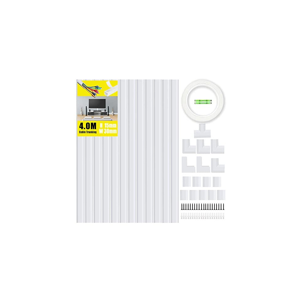 Flow fire 30x15mm White Cable Trunking, 4M Self Adhesive Cable Conduit Management Trunking for Wall Mounted TV Cable Tidy (10X L400mm, W30mm H15mm)