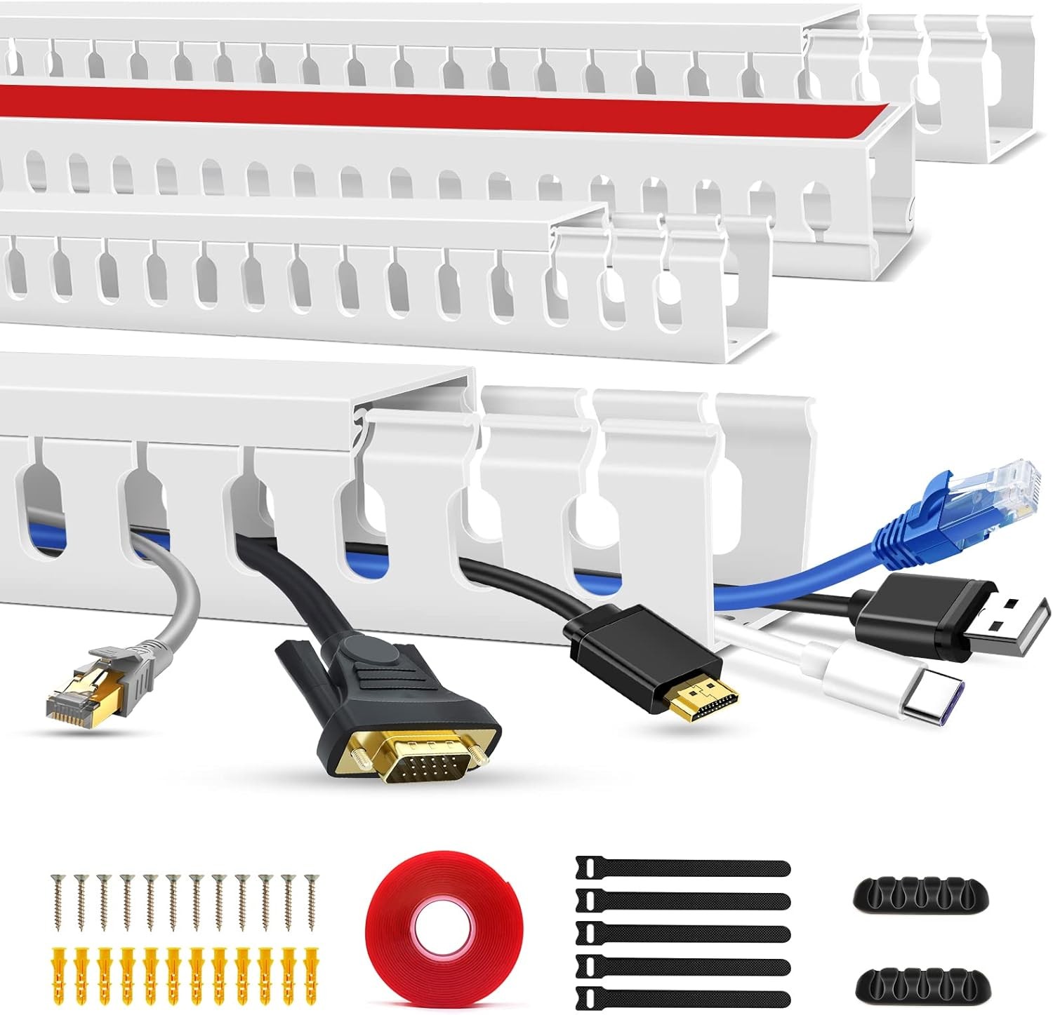 TV Cable Trunking 1m – PVC Wire Tidy for Wall Wire Cover, Hides 1~10 Cables,