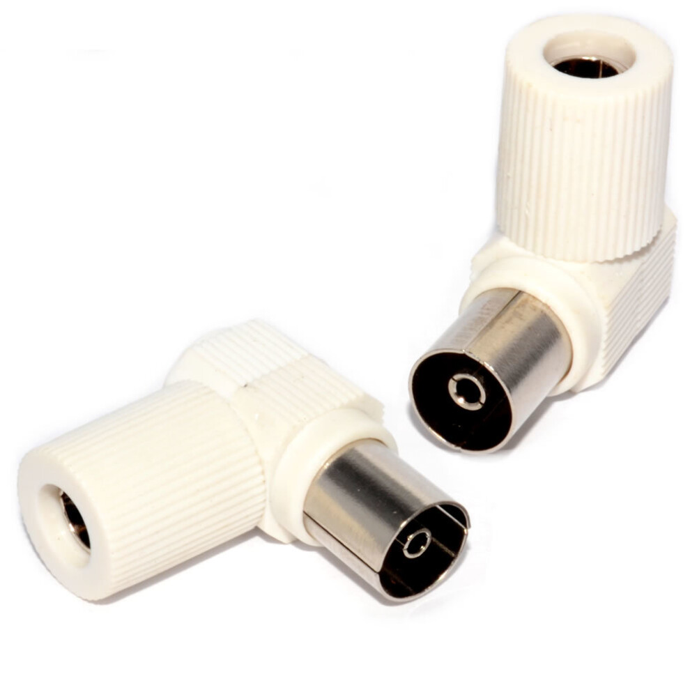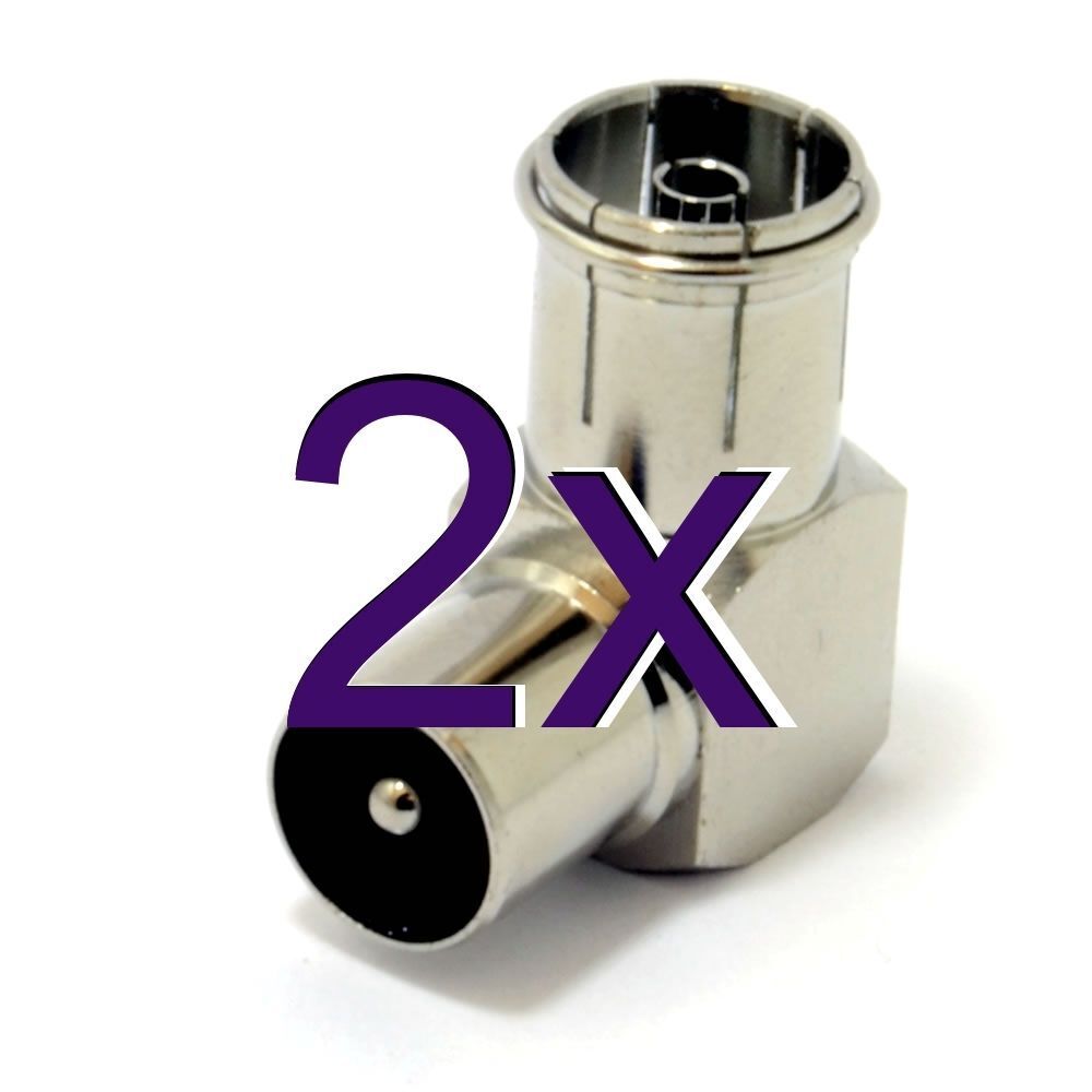 [2 pack] RF Right Angle Adapter Plug to Socket For TV Coax Aerial Cables