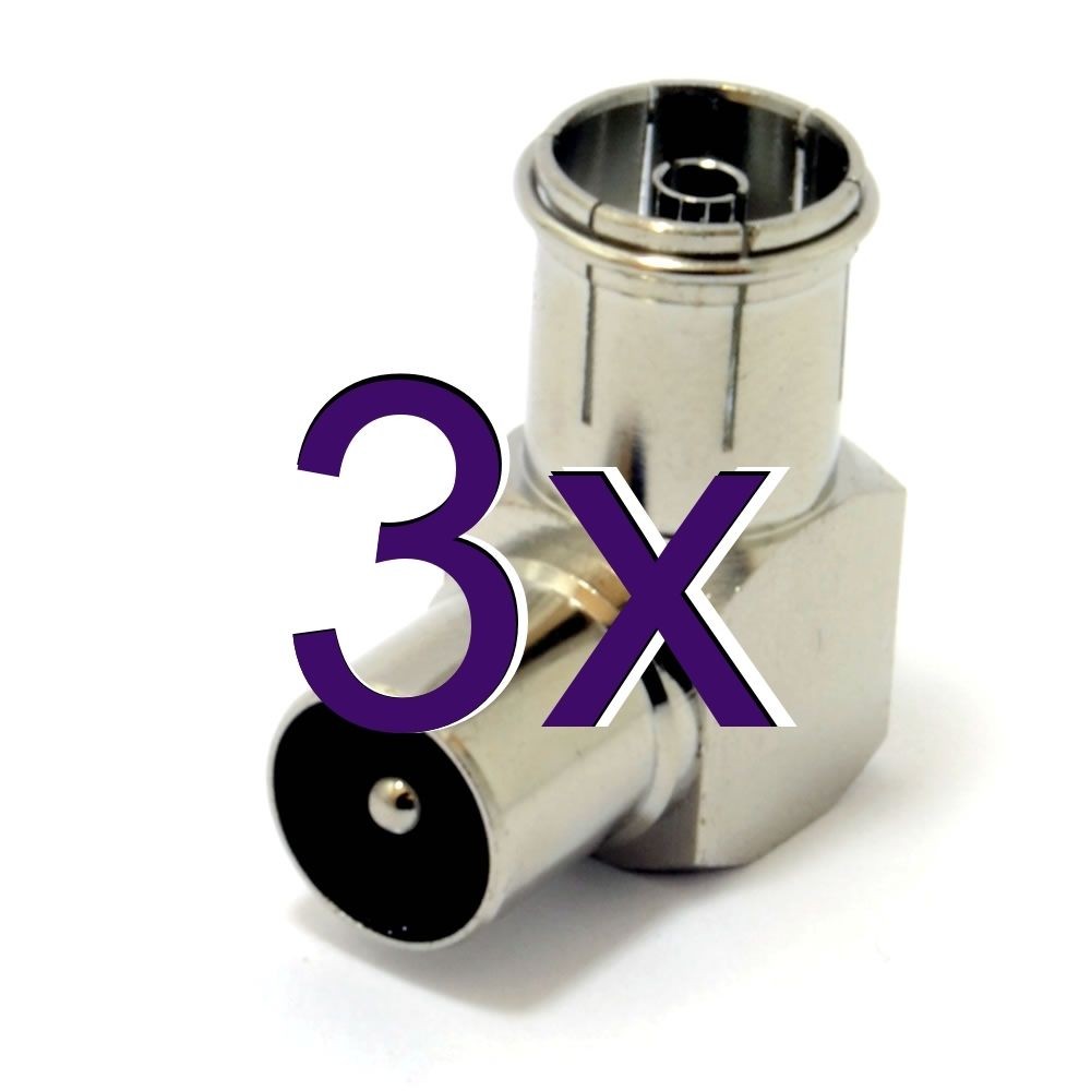 [3 pack] RF Right Angle Adapter Plug to Socket For TV Coax Aerial Cables 006146