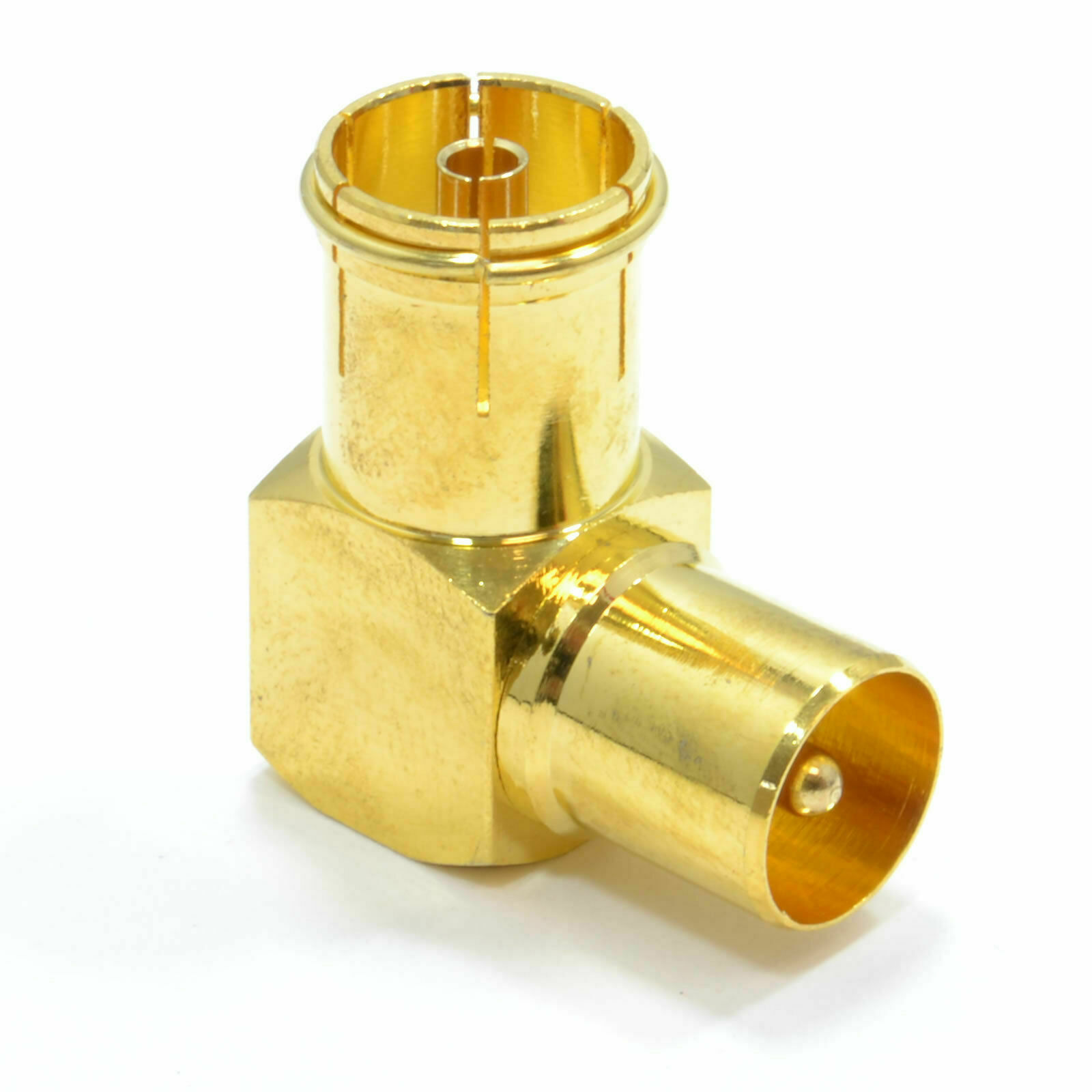 RF Right Angle Adapter Plug to Socket For TV Coax Aerial Cables GOLD Elbow