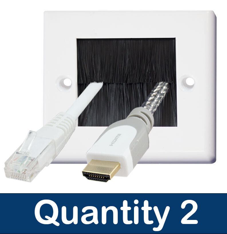 2 White Single Gang Brush Wall Plate Wall Plate with Black Brushes for TV Cables