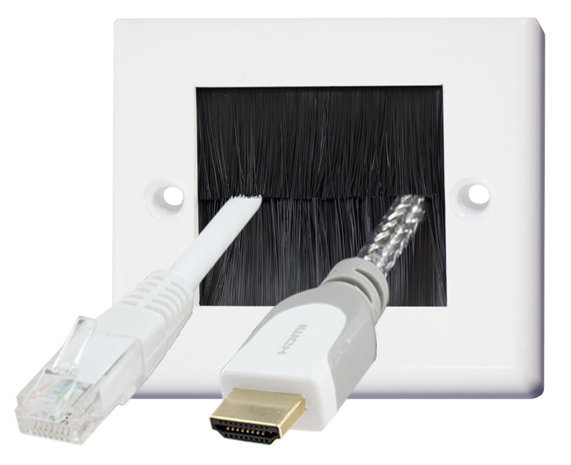 White Single Gang Brush Wall Plate Wall Plate with Black Brushes for TV Cables