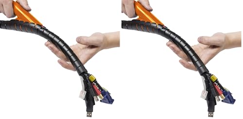 D-Line Cable Zipper, Organise PC or TV cables, Zip Tool Installation, Desk Cable Management – 25mm outer diameter, 2.5m Length – Black (Pack of 2)