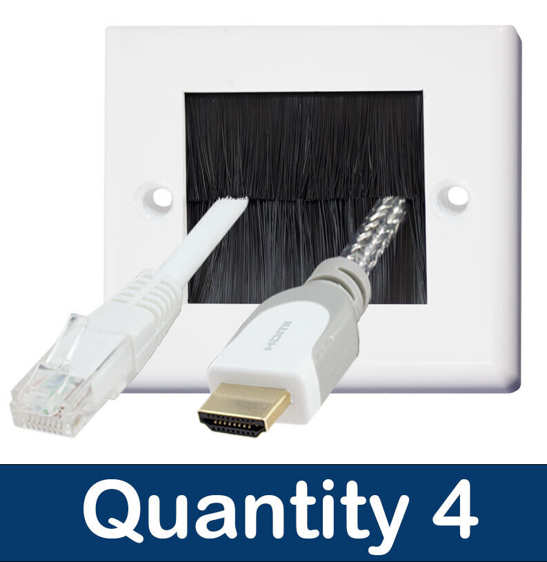 4 White Single Gang Brush Wall Plate Wall Plate with Black Brushes for TV Cables