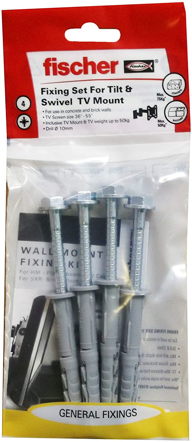 Fischer Wall Mount TV Bracket Fixing Kit High Quality 4x plug/screw set