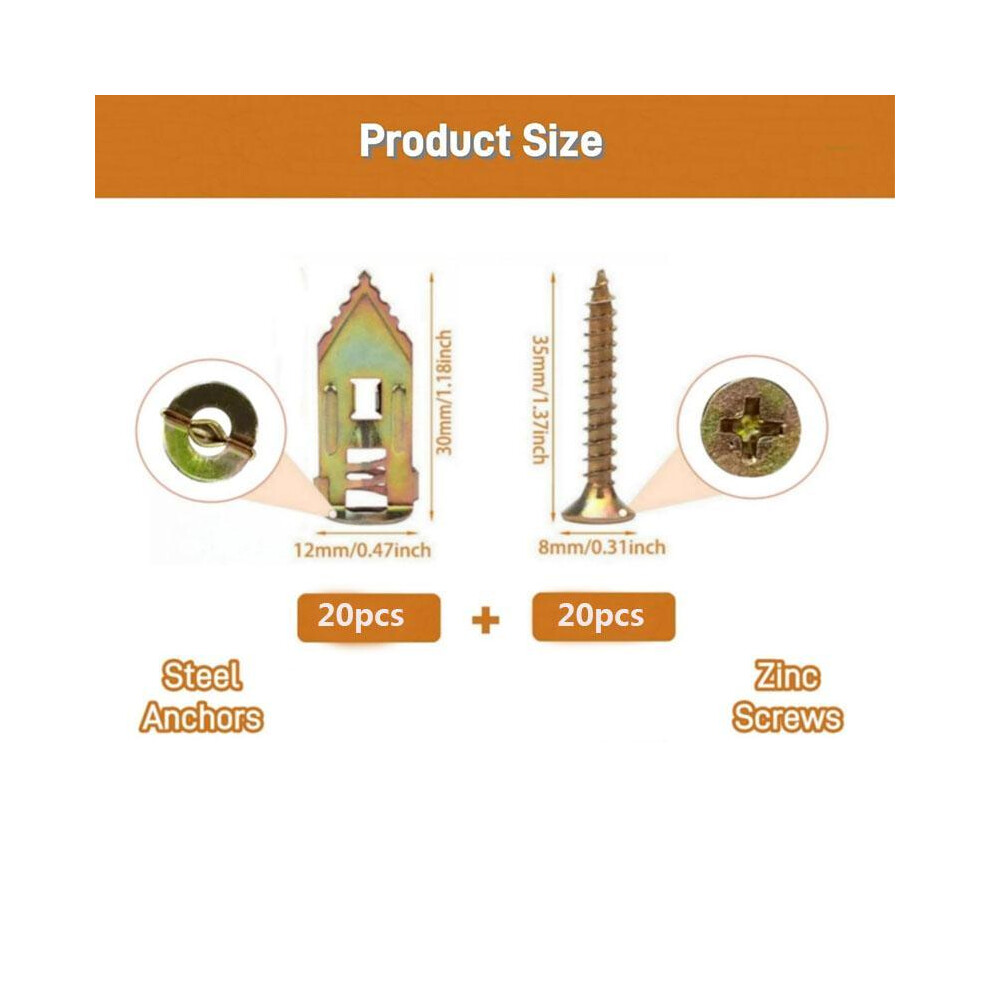 (40 pieces, Light Golden) Plasterboard Anchor, Self Drilling Plasterboard Anchor & Screw Kit, Hollow Screws & Anchors for TV, Bicycle, Cabinet Fixing